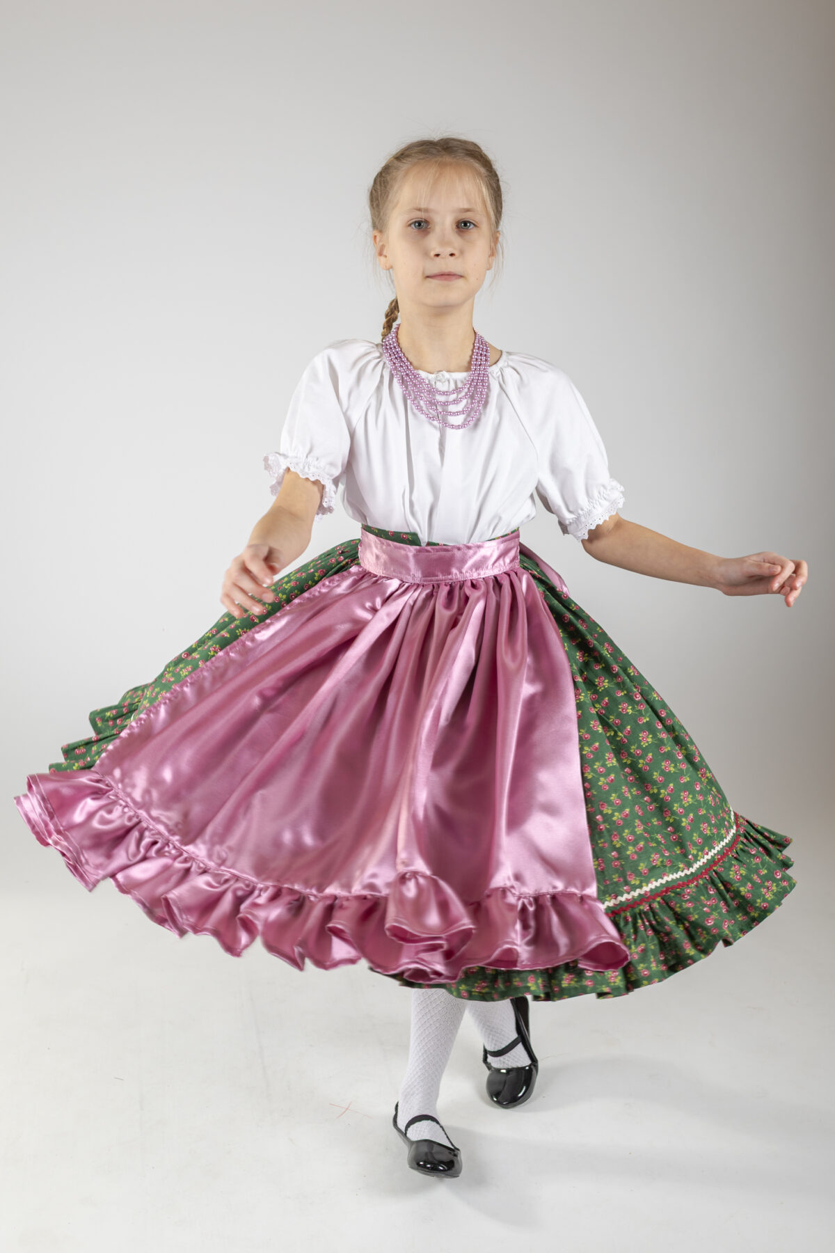 Különböző színű és mintázatú szoknyáink csipke és farkasfog illetve fodor díszítéssel készülnek. A szoknya alját egy vagy két sor fodor, felette egy vagy két sor farkasfog/szaténszalag díszíti. Dereka hagyományos pertlis megkötővel készül és az eleje alja egybevarrott. Egységára gyerekeknek 60 cm korc nélküli hosszig, 2,8 m anyagbőséggel. Felnőtteknek 61-80 cm korc nélküli hosszig egységárnak számít, kb. 4,2 m anyagbőséggel. 80 cm korc nélküli hossztól felárat számolunk fel.